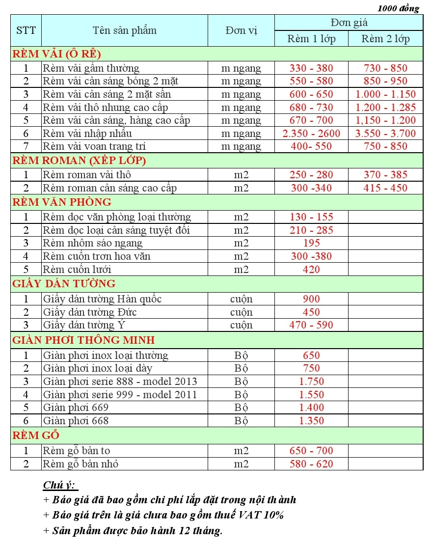 Lời đầu tiên xin cảm ơn quý khách hàng đã quan tâm đến rèm vải (màn vải) của Rèm cửa Nhật Hoàng chúng tôi và xin gửi báo giá chi tiết các sản phẩm rèm cửa, rèm vải (màn vải) đến quý khách hàng như sau
